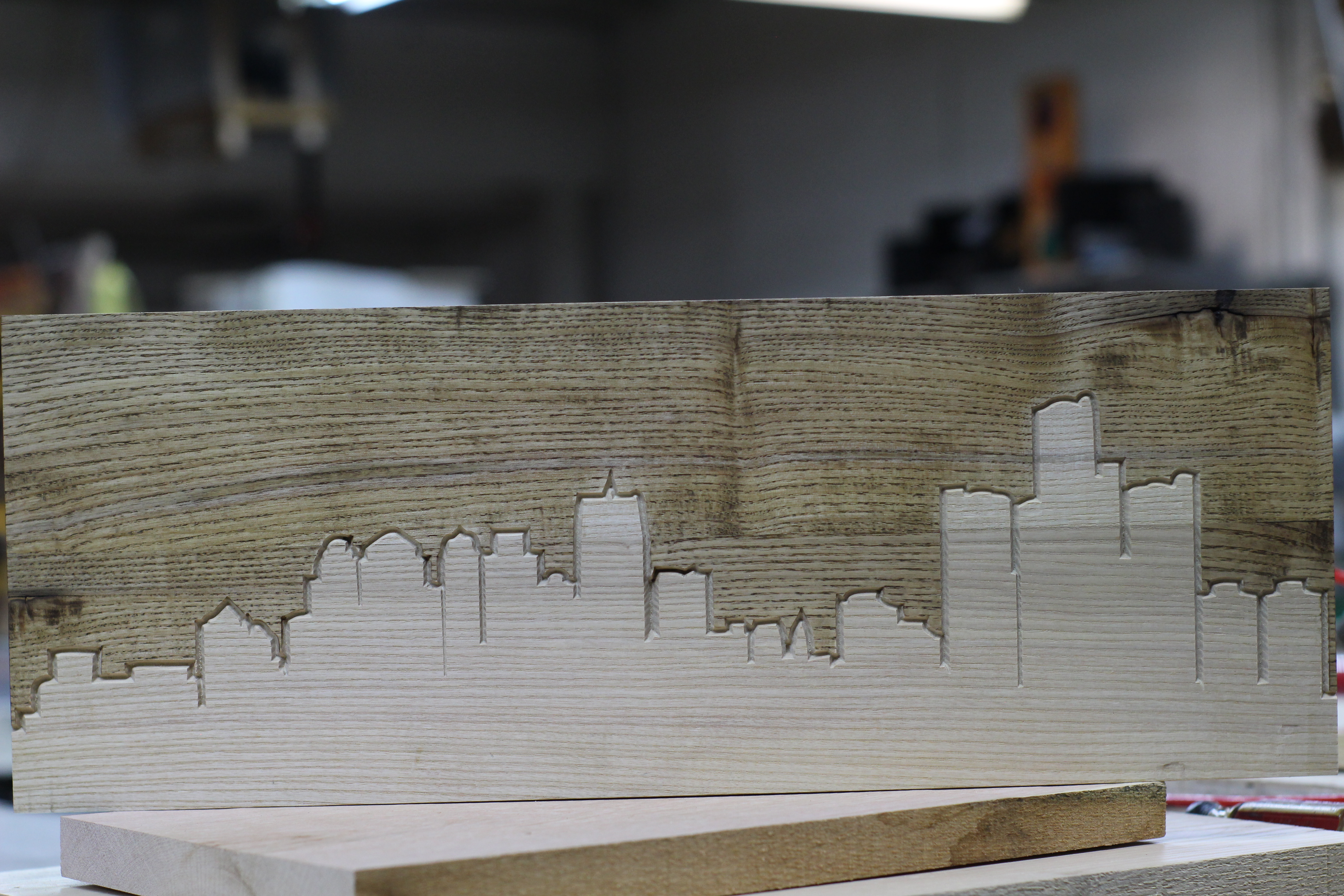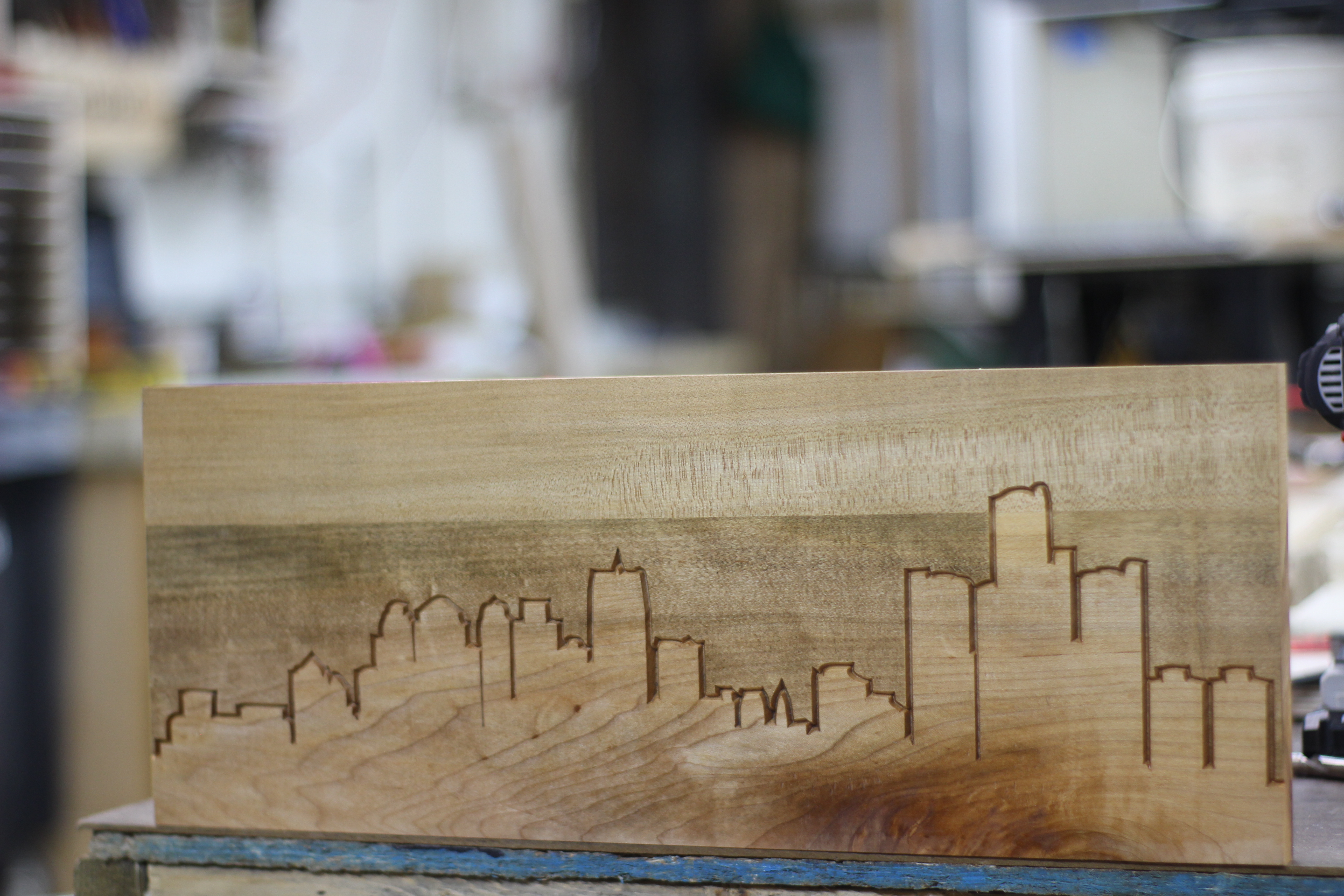 In your Choice of Hardwoods, with the Sky stained a contrasting color, the Skyline of our beloved City as seen from the Canadian shore just upriver from the Ambassador bridge.